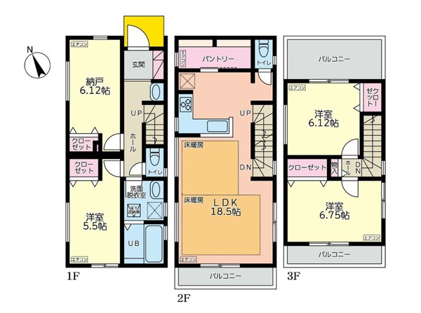 築年月 2022年2月築 間取り 3SLDK (洋室5.5/洋室6.1/洋室6.7/S6.1/LDK18.5)