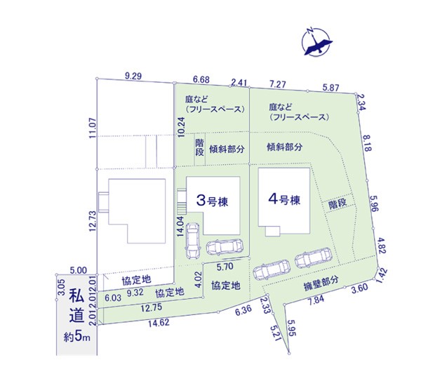 セールスコメント  土地面積:傾斜地部分約95.01平米含、有効宅地面積132.84平米、協定通路部分含む路地状部分面積:32.16平米