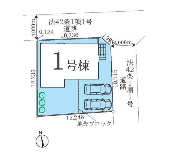 | 接道状況 | 接道: 北 公道 道路幅: 4m 接道: 東 公道 道路幅: 4m |