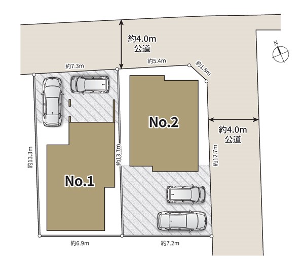 | 接道状況 | 接道: 北 公道 道路幅: 4m 接道: 東 公道 道路幅: 4m |