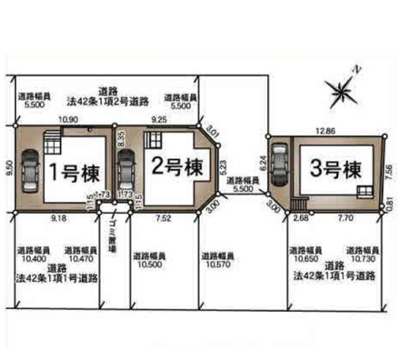 | 接道状況 | 接道: 東南 公道 道路幅: 10.5m 接道: 北西 私道 道路幅: 5.5m 接道: 北東 私道 道路幅: 5.5m |