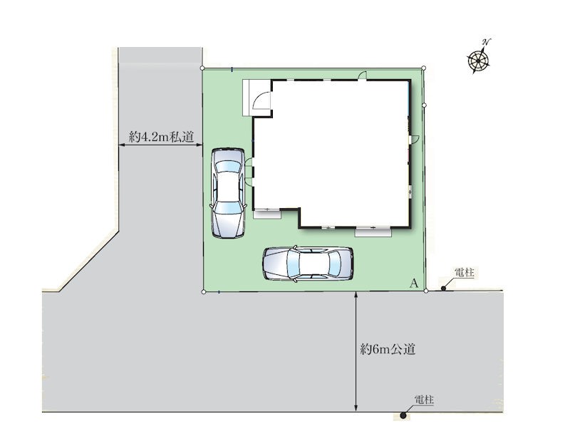 | 接道状況 | 接道: 南 公道 道路幅: 6m 接道: 西 私道 道路幅: 4.2m |