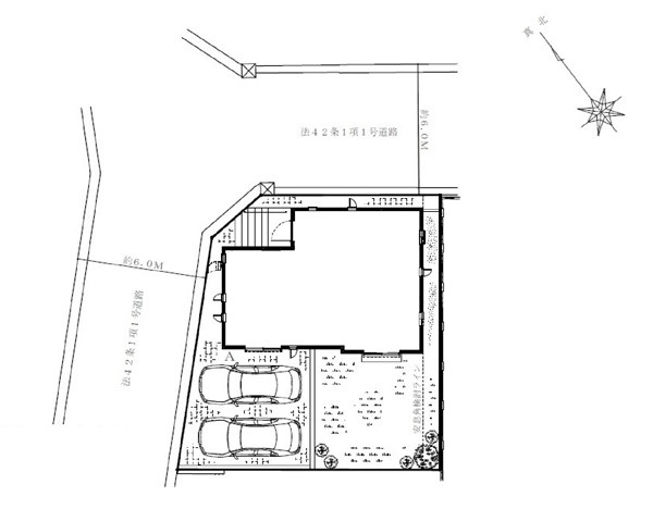 | 接道状況 | 接道: 北東 公道 道路幅: 6m 接道: 北西 公道 道路幅: 6m |