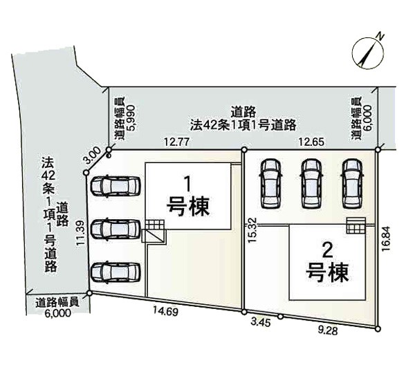| 接道状況 | 接道: 北西 公道 道路幅: 5.9m 接道: 南西 公道 道路幅: 6m |