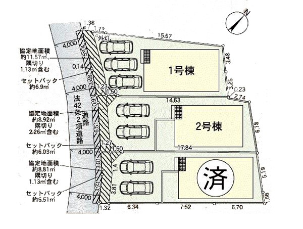 セットバック | あり | 法令上の制限 | 建基法22条指定区域 協定地面積約8.92平米有(隅切り2.26平米含む) |