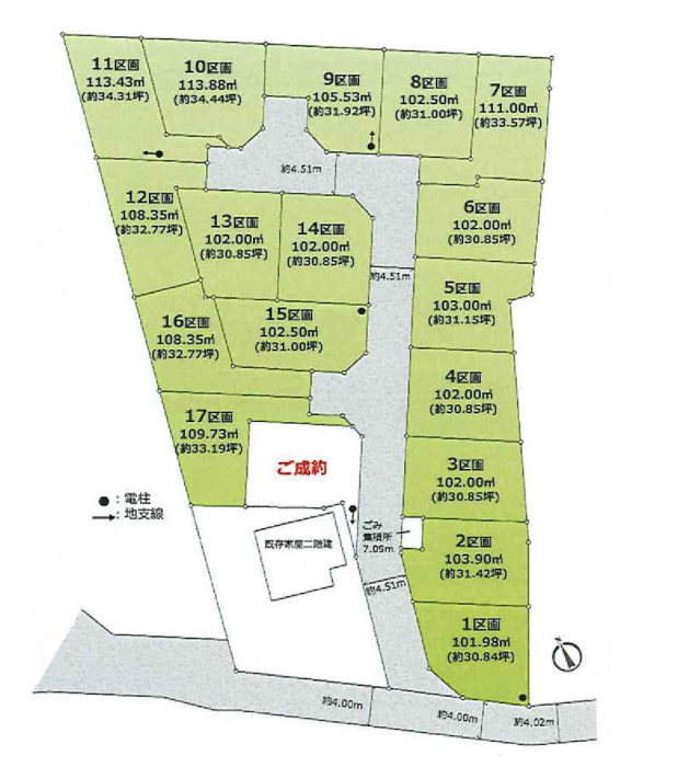| 法令上の制限 | ごみ集積所持分:7.09平米×1/18有 公営水道・本下水・都市ガス:引込予定 路地状部分約15平米含 | 国土法届出 | 不要 |