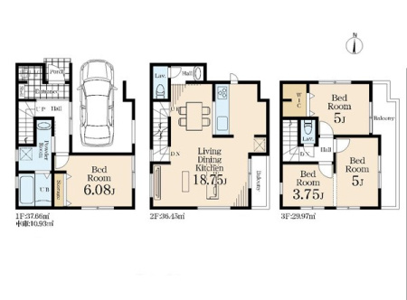 土地面積 | 94.37m² (28.55坪) | 建物面積 | 92.74u |