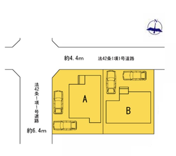 | 接道状況 | 接道: 北 公道 道路幅: 4.4m 接道: 西 公道 道路幅: 6.4m |