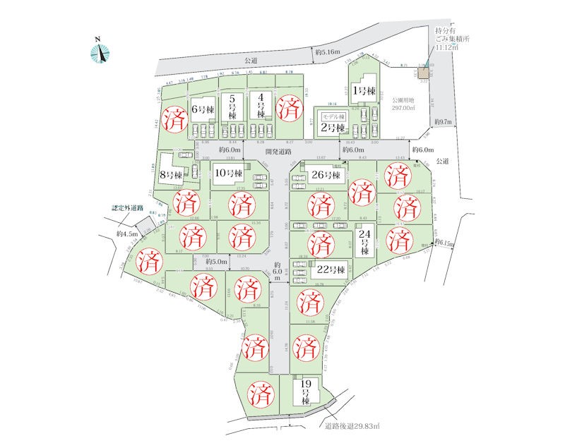 | 接道状況 | 接道: 西 公道 道路幅: 6m 接道: 北 公道 道路幅: 6m |