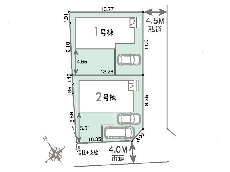 | 接道状況 | 接道: 東南 私道 道路幅: 4.5m 接道: 南西 公道 道路幅: 4m |